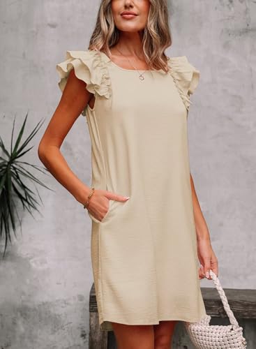 HOT ! Womens Summer Dresses Bow Tie Back Sundresses for Women Ruffle Short Sleeve Dress Casual Cute Sundress with Pockets