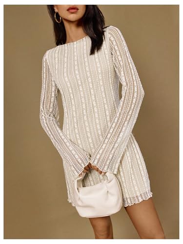 SOLY HUX Women's Lace Mini Dress Boat Neck Long Sleeve Lettuce Trim Bodycon Dresses 1