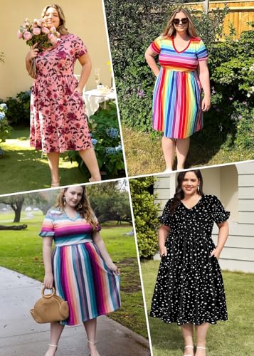 • 【Comfortable fabric】 This plus size dress is made of 95% Polyester5% Spandex. The fabric of the plus size dress is slight stretch and comfortable, lightweight and comfortable. Colorful plus size dress are available in a variety of colors, with heart print, black star, blue star, colorful stripes and blue flower.This plus size summer dress make you look more classy.