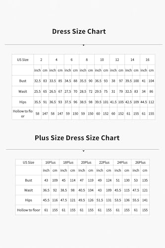 • 【About Size/Color】 Please refer to our own dress size chart on the left before buying. Do not refer to the Amazon size chart.Free customization for sizes and colors.For the best fit,just choose the size closest to your own size and email us the measurements of bust, waist,hips,shoulder to shoulder,hollow to floor,height and shoe height.