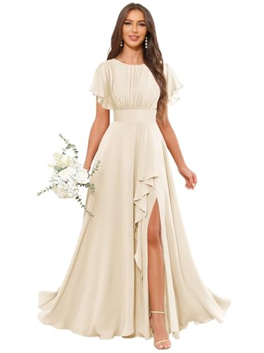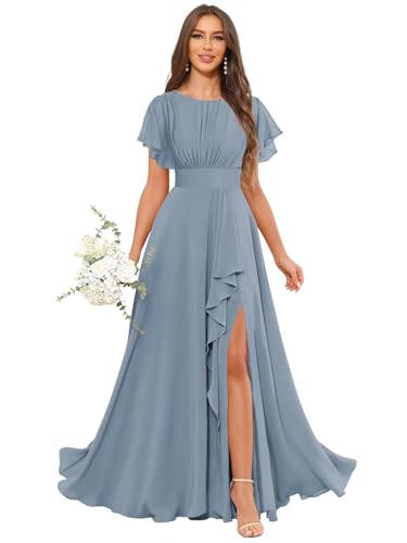 More information about Long Chiffon Bridesmaid Dresses for Women Elegant Pleated Formal Evening Gowns with Slit