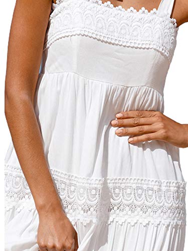 Women Mesh Dresses Sleeveless Casual Lace Long Dress Summer Backless Loose Beach Sundress (Color : White, Size : L.) 5