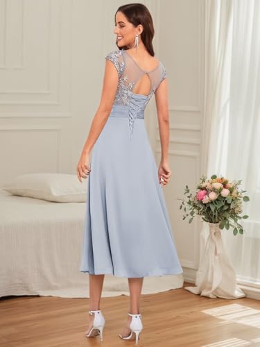 • Features: Tea length mother of the bride dresses, short sleeve lace applique mother of the groom dress, empire waist formal mother of the bride dresses for wedding, tea length; lace-up back, built-in bra