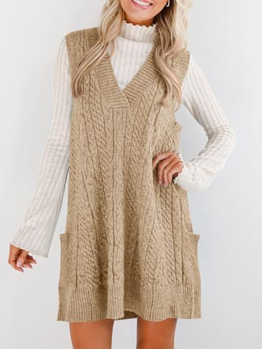 More information about Cicy Bell Womens Oversized Sweater Vest Dress V Neck Sleeveless Fall Trendy Casual Knit Cable Mini Dresses