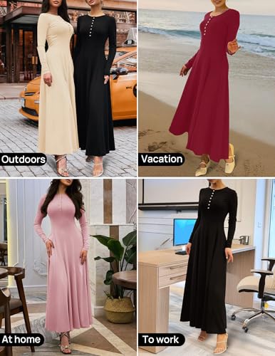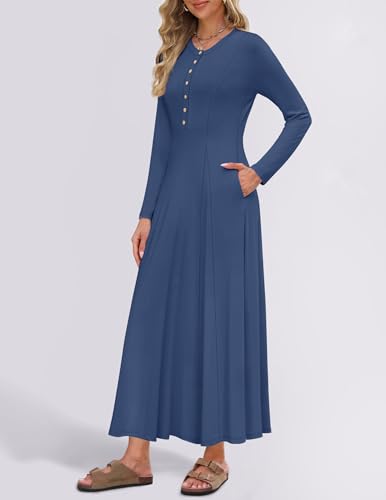 • Design: Women's maxi boho dress features long sleeve, casual button v neck, solid color, fit & flare swing hem gracefully flatters your curves! Side pockets and no zipper, you can style this dress with heels, earrings —making it a ideal pick for any look!