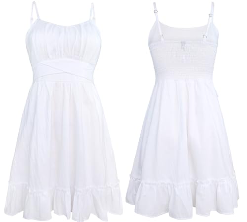 More information about ROYLAMP Women's Summer Spaghetti Strap Dress Casual Wrap Sleeveless Backless Ruffle Hem Swing Mini Dresses with Pockets