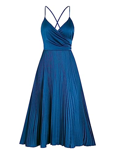 More information about ZAFUL Womens Satin Sexy Backless Wrap V Neck Sleeveless Spaghetti Strap Pleated Flowy Party Midi Dress