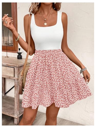 SOLY HUX Summer Dresses for Women Floral Print Square Neck Sleeveless A Line Ruffle Hem Flowy Short Dress 1