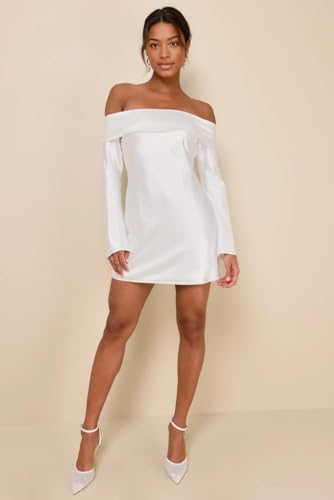 Off-The-Shoulder Silk Mini Dress Long Sleeves Elegant Satin Party Evening Gown 1