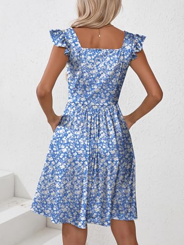 Naggoo Women's Summer Dresses Casual Square Neck Floral Sundress with Pockets A Line Flowy Beach Dress 1