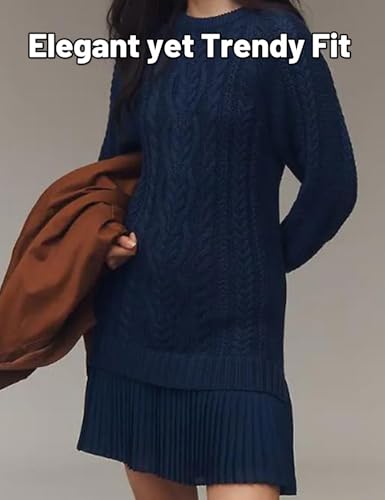 • 【Classic & Flattering Design】Crafted with a Timeless Crewneck and Long Sleeves, This Women Cable Knit Sweater Dress Combines Casual Elegance with Everyday Practicality. The Relaxed Top Transitions into a Flattering A-Line Pleated Skirt That Highlights Your Silhouette While Offering a Graceful, Feminine Flow