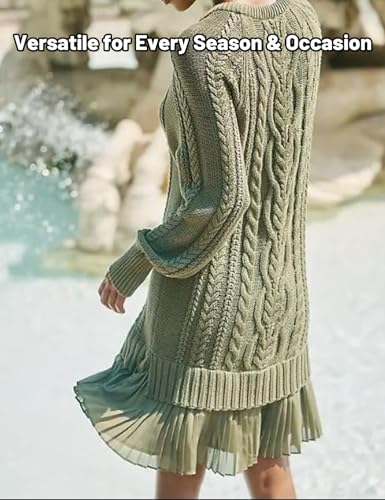 • 【Elegant yet Trendy Fit】Designed with a Slightly Loose Tunic-Style Upper Body and a Gently Cinched Waist, This Cable Knit Sweater Dress Blends Comfort with Shape. The Oversized Sweater Top Pairs Perfectly with a Tiered Pleated Hem, Creating a Cute, Trendy Look While the A-Line Silhouette Flatters Different Body Types—easy to Dress up or down for Multiple Occasions