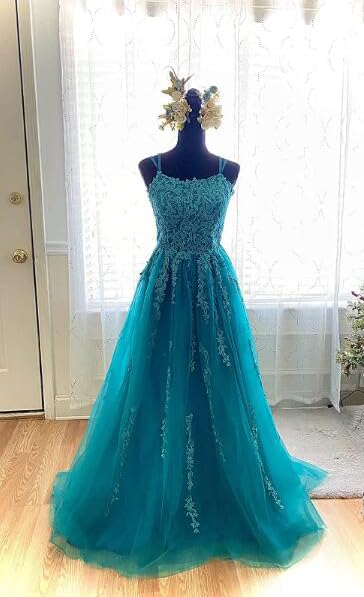 More information about Chicbridal Tulle Prom Dress Lace Appliques Ball Gowns Straps Long Evening Dresses for Women