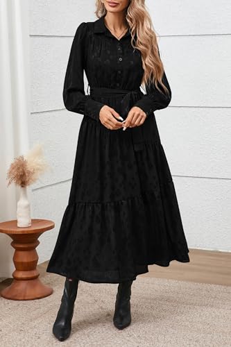 • DESIGN: Long Sleeve Maxi Dress Featuring A Classic Button-Down Front, Turn-Down Collar, And Feminine Tiered A-Line Silhouette For A Sophisticated Look. Elastic Waist With Removable Tie Belt Creates A Customizable, Figure-Flattering Silhouette While Maintaining Comfortable Loose Fit. Two Practical Pockets And Tiered Skirt Design That Creates Elegant Movement And Flow
