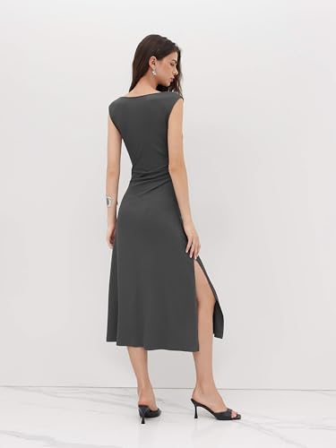 CIDER Womens Summer Dresses Sleeveless Semi Formal Midi Dress Boat Neck Ruched A Line Split Elegant Dress 4