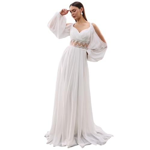 • 【Romantic Off-Shoulder & Long Sleeve Design】 Delicate lace cold-shoulder neckline paired with elegant full-length sleeves creates a balance of sensuality and sophistication—perfect for traditional weddings or vintage-themed ceremonies.