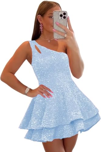 Sequin Homecoming Dresses for Teens Sparkly Layered One Shoulder Short Prom Dresses 2024 Cocktail Party Dress 1