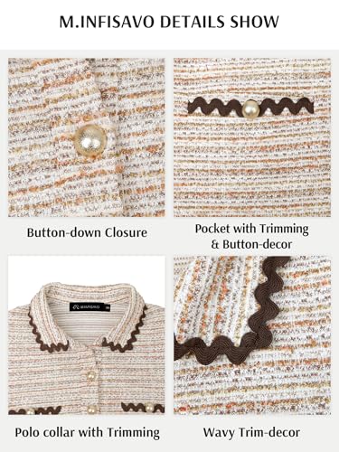 M.Infisavo Womens Tweed Dress, Collared Short Sleeves Pencil Dresses with Pocket for Work Casual 1