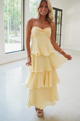 Flowy Chiffon Tiered Bridesmaid Dress Spaghetti Straps Formal Evening Dresses QA262 6