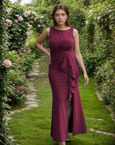 • Features: Mermaid mother of the bride dress with slit for women, ruched boat neck mother of the groom dresses, cascading ruffle long grandmother of bride gown, v-back sleeveless grandmother of groom gowns for wedding, backless, floor length, zipper back