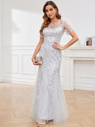 • Fashion Design:Mermaid Sequin Mother of The Bride Dresses for Wedding, Long Tulle Mermaid Mother of The Groom Dresses with Sleeves, Sequin Mermaid Formal Dresses for Women Evening Party, A Line,Short Sleeve, Zipper Back, Floor Length,Fully Lined,Built-in Bra in the Bodice.