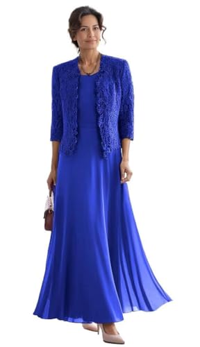 2 Piece Mother of The Bride Dresses with Jacket Lace Chiffon Tea Length 3/4 Sleeve Formal Dress for Women WQ11 1