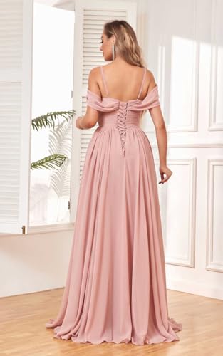 More information about SOLODISH Off The Shoulder Bridesmaid Dresses Long Pleated Chiffon A Line Formal Evening Gown
