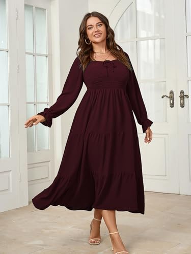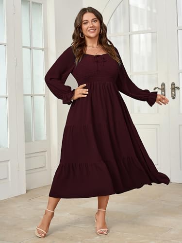 More information about Womens Plus Size Flowy Maxi Dress Long Sleeve Square Neck Smocked A Line Formal Long Dresses for Women Wedding Guest