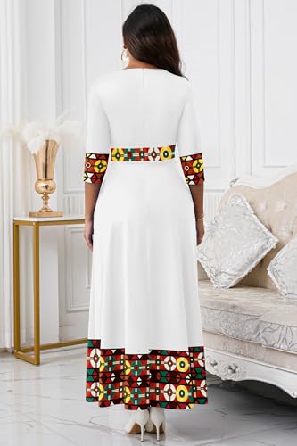 FANDEE Casual Maxi Dresses for Women Elegant 3/4 Sleeve Round Neck Africa Print Church Dress with Pocket 4