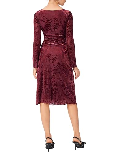 CIDER Womens Velvet Floral Long Sleeve Midi Dress Square Neck Elegant Party Dresses 4