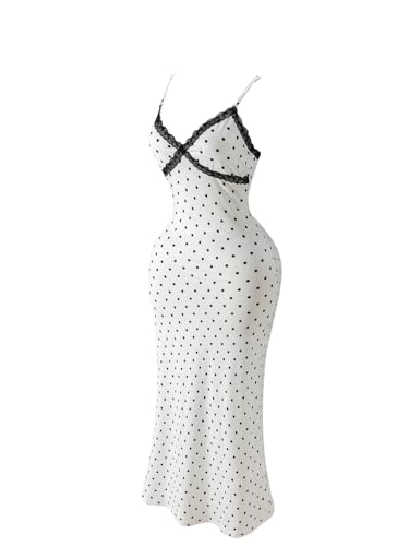 More information about Verdusa Women's Polka Dots Dress Lace Backless Elegant Bodycon Cami Maxi Dresses