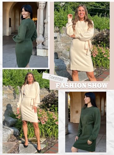 HOT ! Dokotoo Womens 2025 Fall Sweater Dress Crewneck Long Sleeve Empire Waist Ribbed Knit Mini Dress with Belt