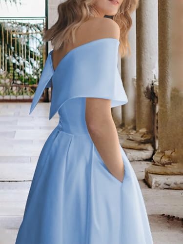 • Features: Modest ruffle satin off the shoulder homecoming dresses for teens,elegant short strapless graduation dress with pockets,a line tea length summer cocktail dresses for women,simple formal ball formal evening dress,built-In bra,fully lined.