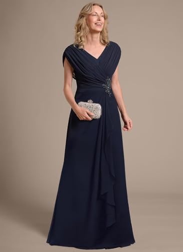 More information about Women's Cap Sleeves Ruched Mother of The Bride Dresses 2025 Long Chiffon Formal Evening Dress DE269
