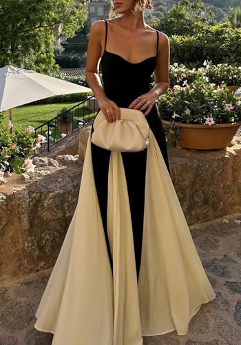 • Stunning Color Block Maxi Dress for Every Occasion:Make a bold statement in this color block maxi dress, featuring a patchwork design and spaghetti straps for a chic, modern look. The A-line flare silhouette and floor-length flowy fabric create an elegant, feminine vibe, perfect for weddings, cocktail parties, or beach vacations. Available in black and white, black and red, black and yellow, and black and orange, it’s a versatile piece for spring and summer 2025.