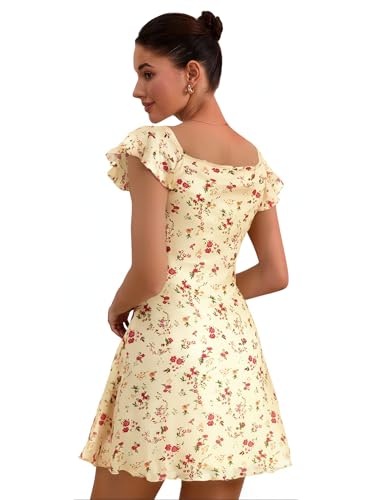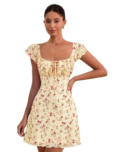 Floerns Women's Floral Print Cap Sleeve Dress Square Neck Tie Front Summer A Line Cute Mini Dresses 1