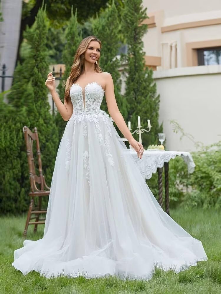 More information about Strapless Wedding Dresses for Bride Tulle Appliques Ball Gown for Women Formal Long Bridal Gown