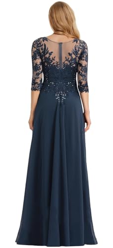Women's Lace Mother of The Bride Dresses for Wedding Chiffon Formal Dress with Sleeves Sequin Evening Gown 4
