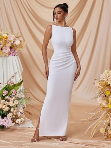 Wedding Guest Dresses for Women Formal Evening Party Year-Round Sleeveless Slim Split Evening Gowns Long Prom Dress 4