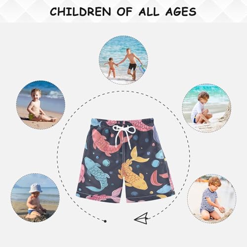 Red Yellow Blue Fishes Boys Swim Trunks, Quick Dry Toddler Beach Shorts Boy Swimwear Bathing Suit 4