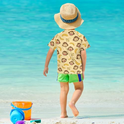 ALAZA Kids Rash Guard Boys Toddler Swim Shirts Short Sleeve Monkey Lovely UPF 50+ 3T 4