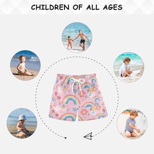 Pigsaly Boys Swim Trunks Cute Pastel Pink Rainbows Flowers Boys Board Shorts Swimsuit Swimwear Summer Bathing Suit 5T 3