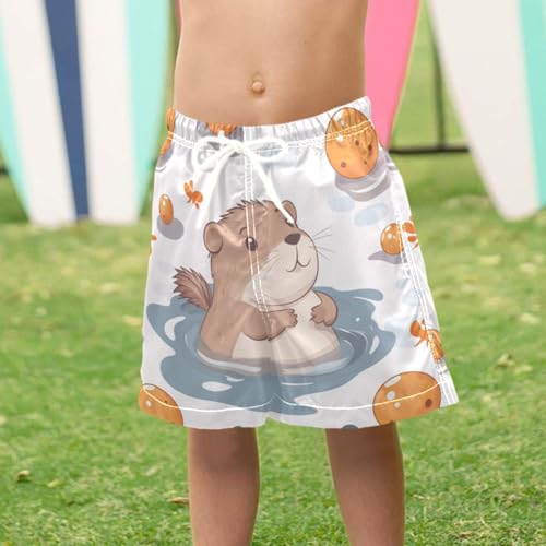 Pigsaly Boys' Swim Board Shorts Cute Capybara Fish Boy's Swim Trunks Kids Swimwear XS Multicolor 3