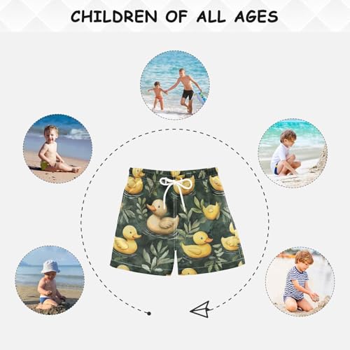 Pigsaly Boys' Swim Board Shorts Watercolor Leaves Yellow Ducks Boy's Swim Trunks Kids Swimwear 2T 5
