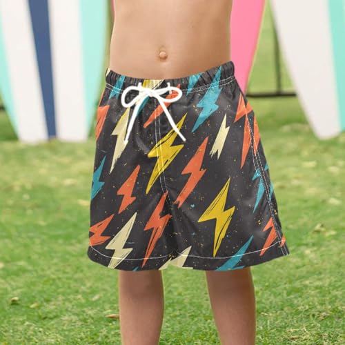 Pigsaly Boys Swim Trunks Abstract Retro Lightning Bolt Colorful Boys Board Shorts Swimsuit Swimwear Summer Bathing Suit 2T 6