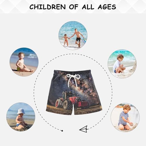 Pigsaly Boys Swim Trunks Red Tractor Truck Galaxy Boys Board Shorts Swimsuit Swimwear Summer Bathing Suit 2T 3