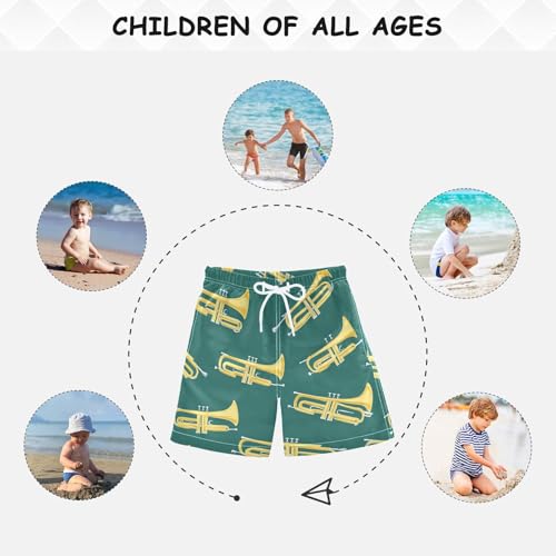 Boys Beach Board Shorts Trumpet Music Dance Green Swim Trunk Teen Swimwear 8-16Y 1