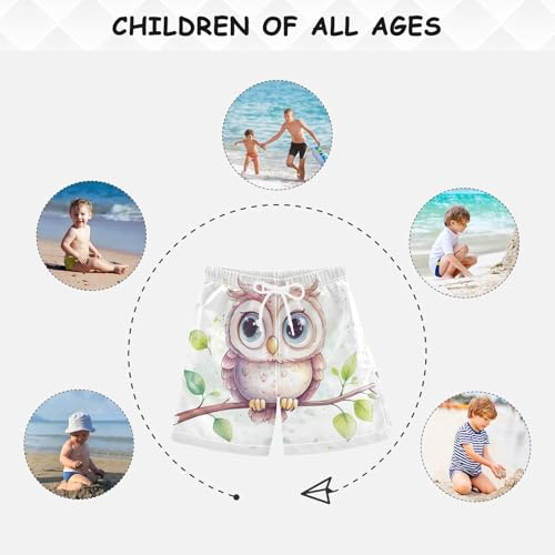 DOMIKING Owl Branch White Boys' Pull On Swim Trunks Quick Dry Boardshorts with Mesh Lining for Boys Kids M 3