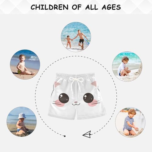 Kitten Face White Swim Trunks for 2-7 Years Swim Beach Shorts Kids Swimwear Board Shorts Bathing Suit Beach Vacation 5