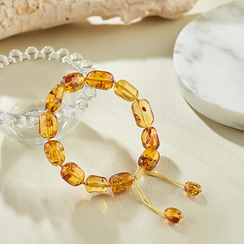 • Handcrafted Design: Each amber ore bead is carefully hand-woven onto a double-stranded jade thread, ensuring a durable and firmly resistant construction that won't scatter.The bracelet features a sliding knot design that allows you to easily adjust the length for a comfortable and safe fit to wear